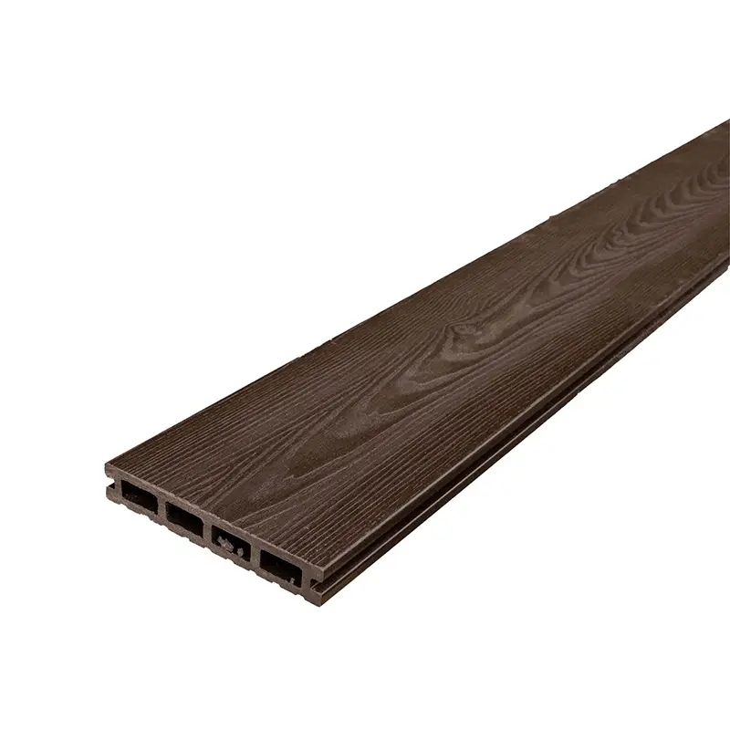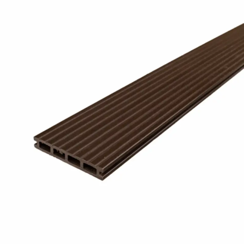 - Рифленая поверхность террасной доски из ДПК обеспечивает надёжное сцепление, что снижает риск скольжения и повышает безопасность использования террасы.