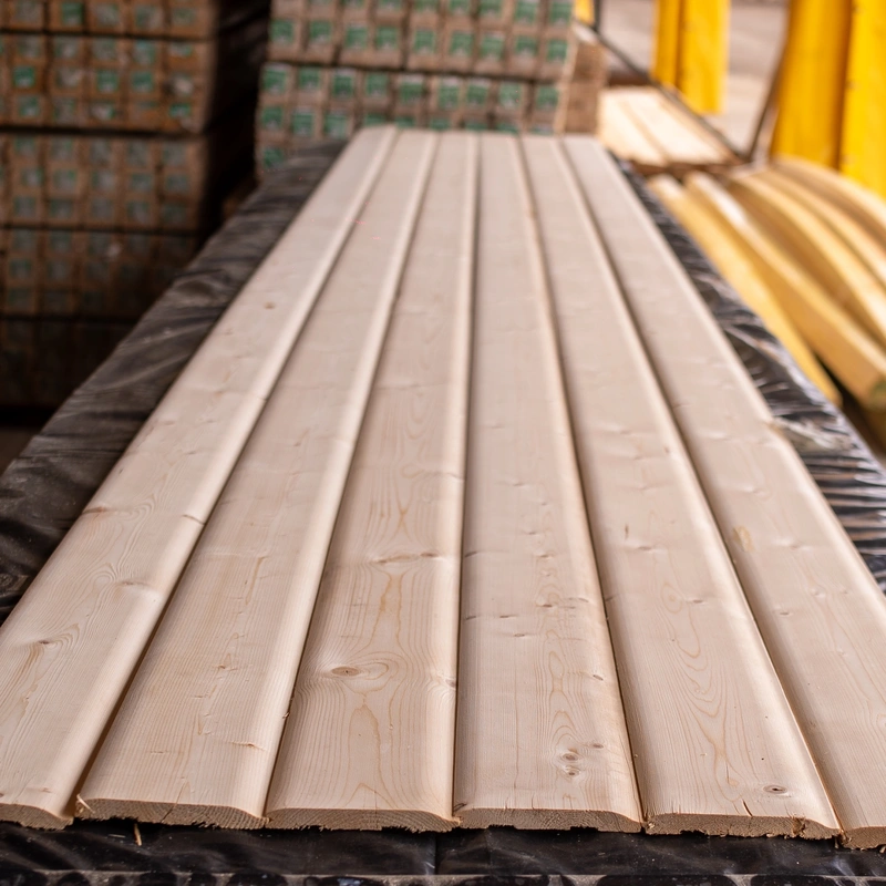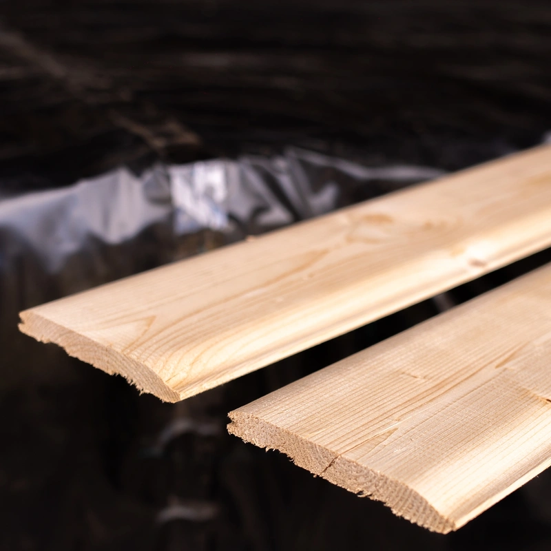 Имитация бруса прошла камерную сушку, и ее влажность составляет 10–18%. Благодаря этому снижается риск рассыхания древесины и образования щелей на обшивке.