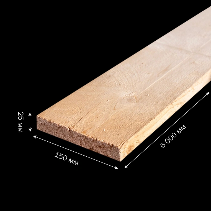 Доска обрезная 25*150*6000мм 1-3 сорт (ГОСТ 8486-86) естественной влажности хвойные породы