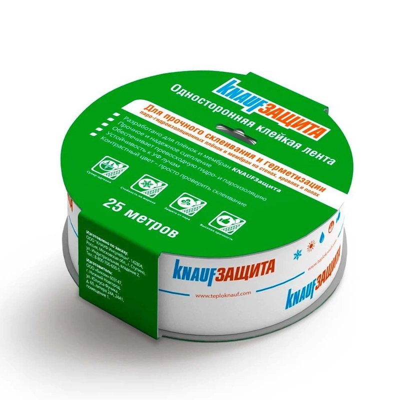 Клейкая лента КНАУФ Защита предназначена для проклеивания нахлестов ветро-влагозащитных и гидро-пароизоляционных материалов.
